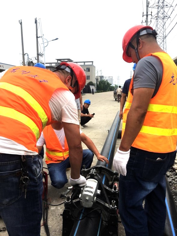 2018年9月6日上午,江都區武堅鎮開發區DN200PE管道施工現場打破了往日的沉悶,一輛輛工程施工車輛整齊地停放在道路一側,揚州市惠民區域供水投資有限公司各鄉鎮供水所和測漏維修隊將在這里進行PE管熔焊技術實踐演練活動。