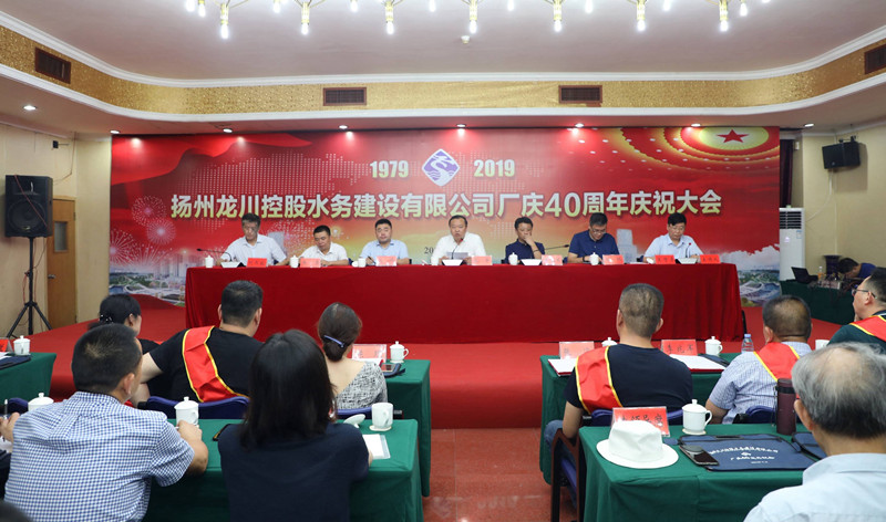 四十年創業與發展,四十年改革與創新。7月1日,在隆重而熱烈的氣氛中,揚州龍川水務公司舉行了廠慶40周年慶祝大會等活動,公司全體領導班子成員、受表彰的先進代表、各部門和子公司的負責人、三級管理人員代表和廣大基層員工代表,以及已退休的各級老領導和老同志代表共130余人參加了本次活動。應邀出席活動的上級領導和嘉賓主要有:龍川控股集團公司各主要領導、深圳市水務投資公司各主要領導及常州、南通、滁州項目公司各相關領導代表。