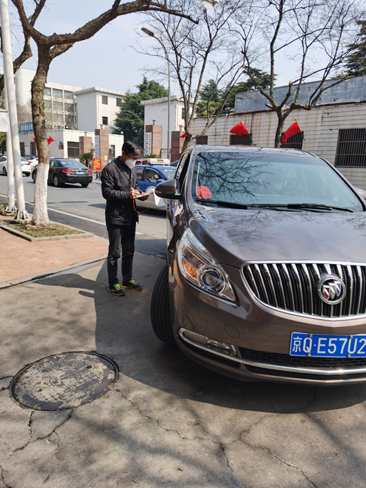 圖2:公司志愿服務(wù)人員對外來車輛進行登記