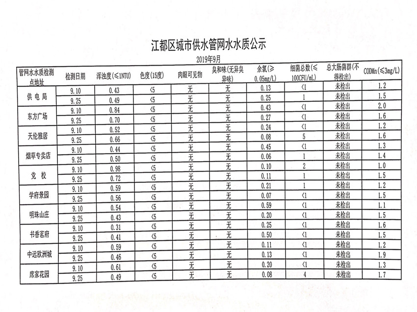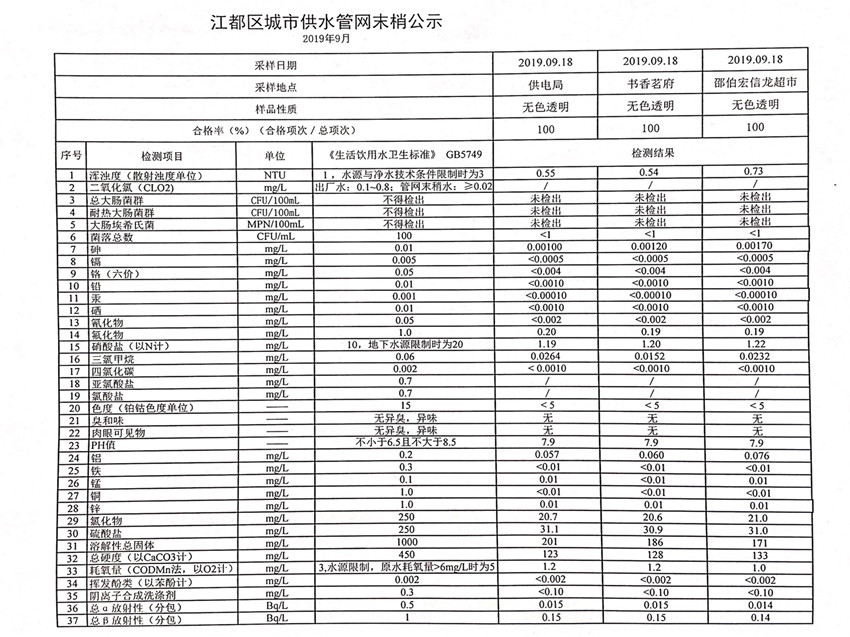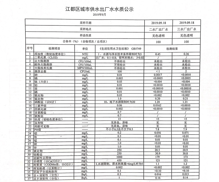 水質(zhì)公示