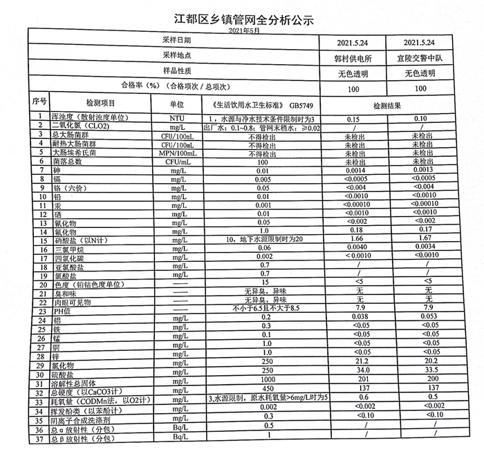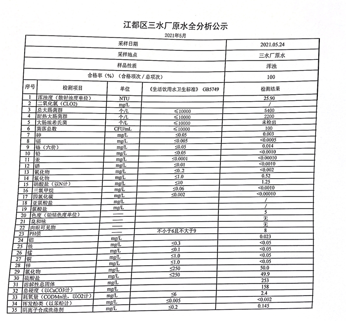 水質(zhì)公示
