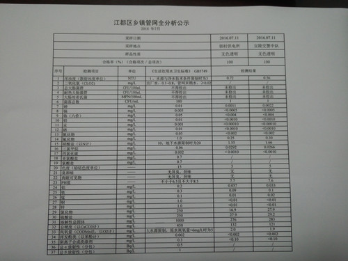 2016年7月江都區(qū)鄉(xiāng)鎮(zhèn)管網全分析公示
