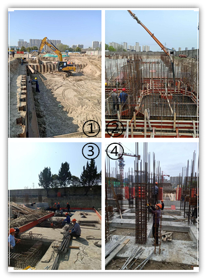 圖④為脫水機(jī)房設(shè)備基礎(chǔ)底板施工結(jié)束鋼筋綁扎中