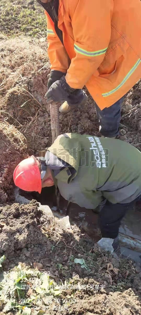 1月7日在奔往塘頭邠州搶修的路上,細心的沈長和發現路邊平時干枯的渠道溝變成了一池冰窖,壞了,管道凍裂了。他立即上報,并著手安排搶修。他知道,今天這個活兒不簡單!-----“挖吧”沈長和對現場的陳師傅說!陳師傅是沈長和聘請的雜工。兩個人卷起袖口開始挖…“不挖不挖了,太冷了,要錢不要命了”陳師傅挖到一半實在受不了寒風凜冽的刺骨,逃離了現場。“他不挖,我們自己挖吧”沈長和帶領隊友韋龍江操起鐵鍬挖土、找漏點......是什么讓他這么拼命?沈長和后來告訴我們,讓用戶有水吃,減小公司水損。