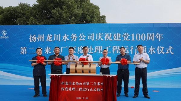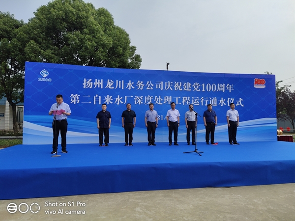 6月29日上午,在喜迎中國共產黨百年華誕之際,揚州龍川水務公司在第二自來水廠隆重舉行深度處理工程運行通水儀式。江都區(qū)副區(qū)長楊曉榮、發(fā)改委副主任王安國、住建局副局長高翔宇、水務局副局長高寅峰、衛(wèi)健委副主任劉俊杰,以及揚州龍川控股集團黨委書記、董事長朱成勇,黨委副書記、總經理高鵬應邀出席活動。龍川控股集團各單位代表、龍川水務全體領導班子成員、中層干部及其下屬各單位三級以上管理人員、全體黨員以及工程建設、施工、監(jiān)理單位代表170余人參加了運行通水儀式。