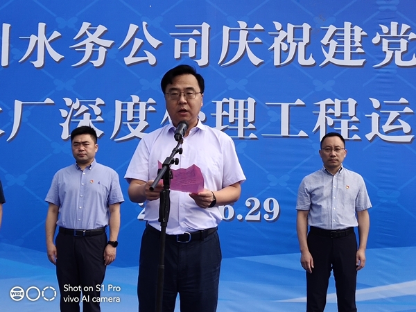 副區(qū)長楊曉榮同志代表區(qū)委、區(qū)政府作重要講話,首先對龍川水務公司第二、三水廠深度處理工程的竣工投運表示熱烈的祝賀,并強調指出,水是經濟社會發(fā)展的重要基礎和關鍵命脈,龍川控股集團委托深圳環(huán)水投資集團運營龍川水務后,水務公司能緊緊圍繞民生所需、民眾所期、民心所盼,大力實施放心水、優(yōu)質水工程,積極推進供水支管網改造和污水管網、農村污水處理設施建設,為全區(qū)水生態(tài)文明建設作出了突出的貢獻,龍川水務公司整體的質態(tài)也有了較大的飛躍。希望以今天的通水儀式為新的起點,不忘初心,牢記使命,乘風破浪,穩(wěn)健前行,進一步推進供水事業(yè)發(fā)展,為江都的社會穩(wěn)定、經濟發(fā)展做出更大的貢獻。