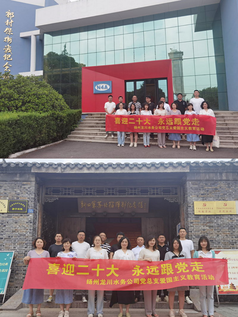 為進一步弘揚愛國主義精神,緬懷先烈、銘記歷史,激發預備黨員、積極分子更加堅定理想信念,樹立正確歷史觀,傳承紅色基因,弘揚革命精神。6月22日上午,揚州龍川水務公司黨總支組織一、二支部的預備黨員及積極分子代表十余人赴郭村鎮開展了“喜迎二十大·永遠跟黨走”為主題的愛國主義教育活動。